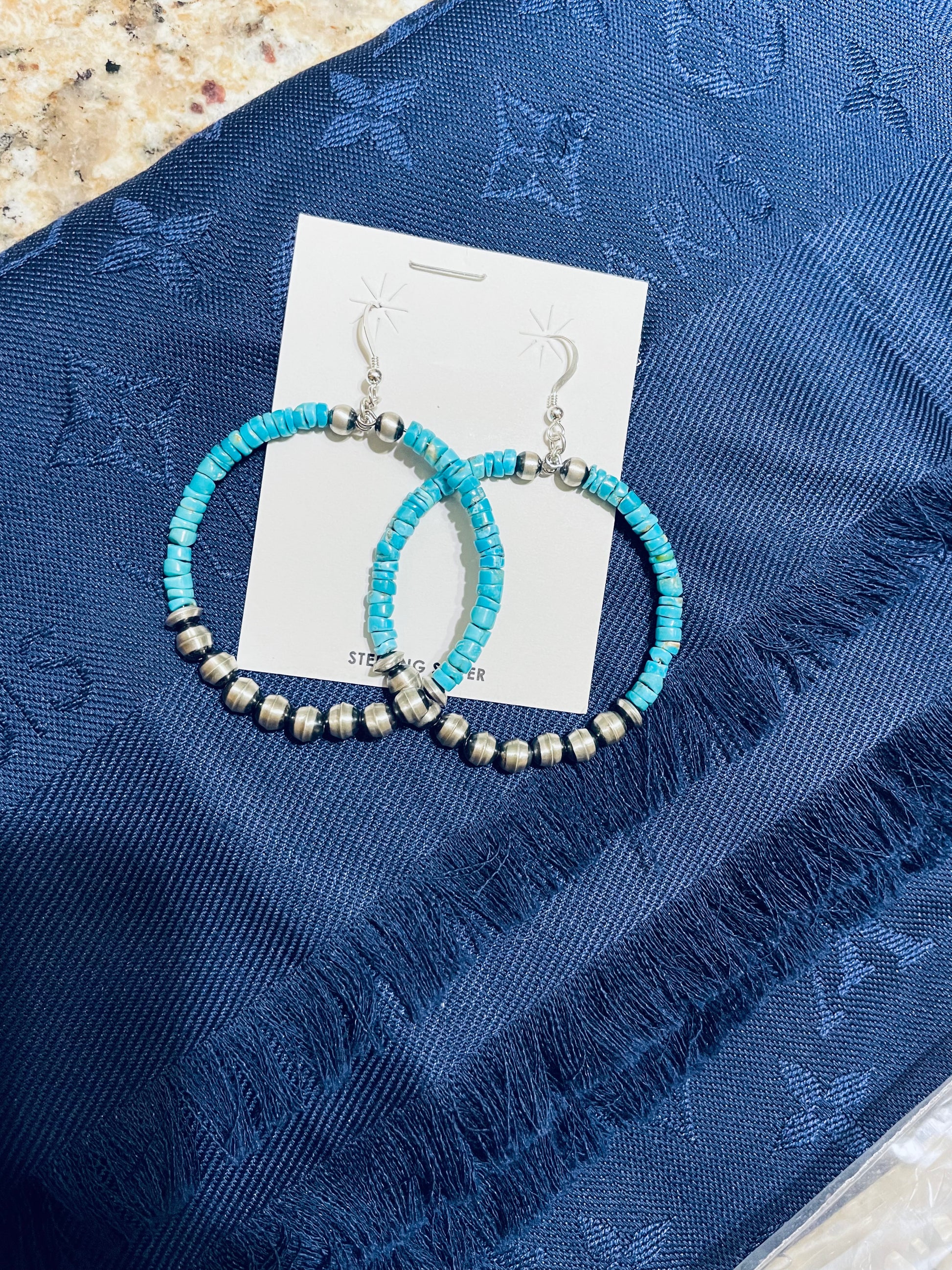 5MM Round Navajo Earrings with Turquoise 2.75"