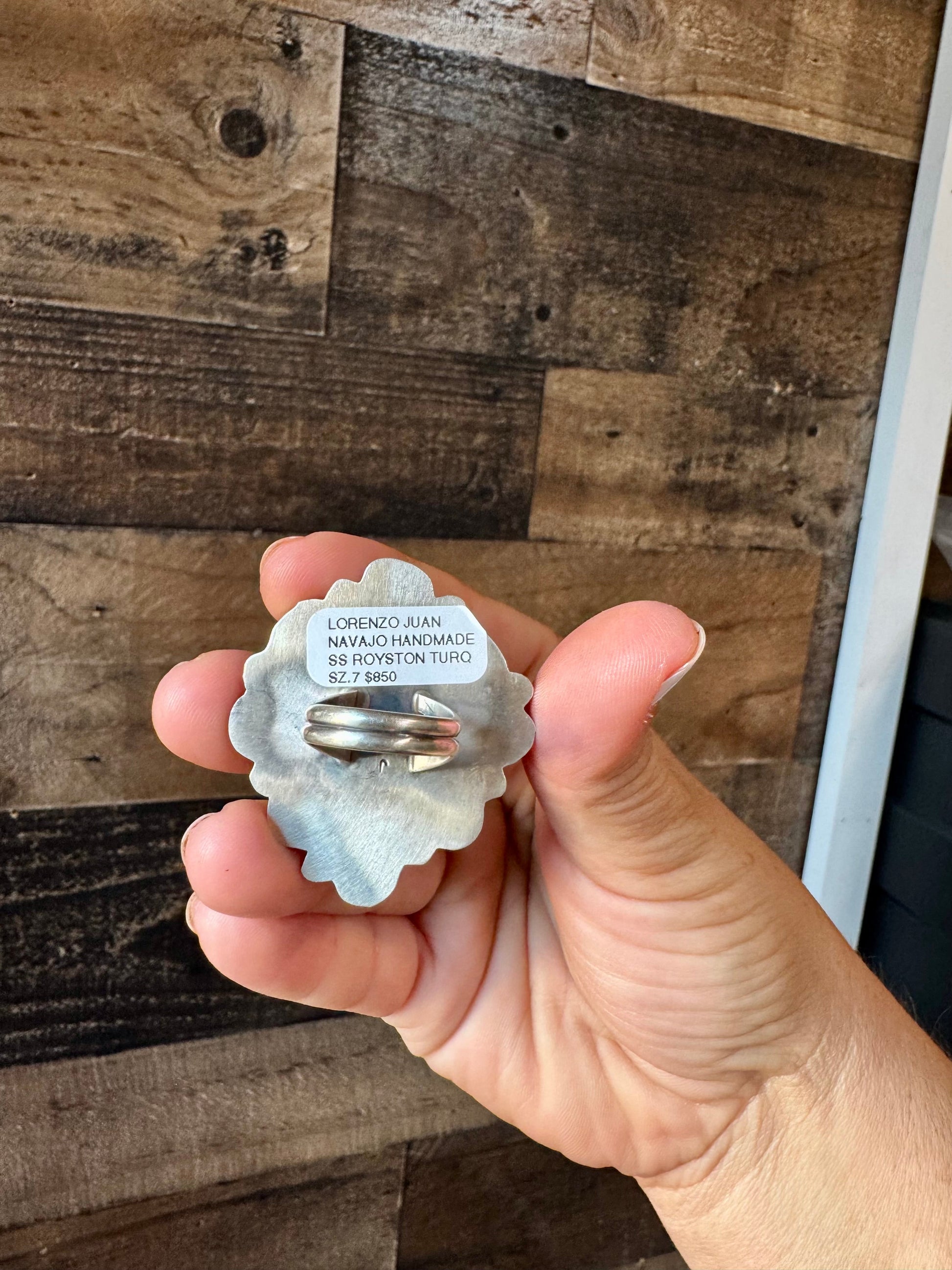 Big flower ring- size 7 1/2- Royston turquoise ring and sterling silver