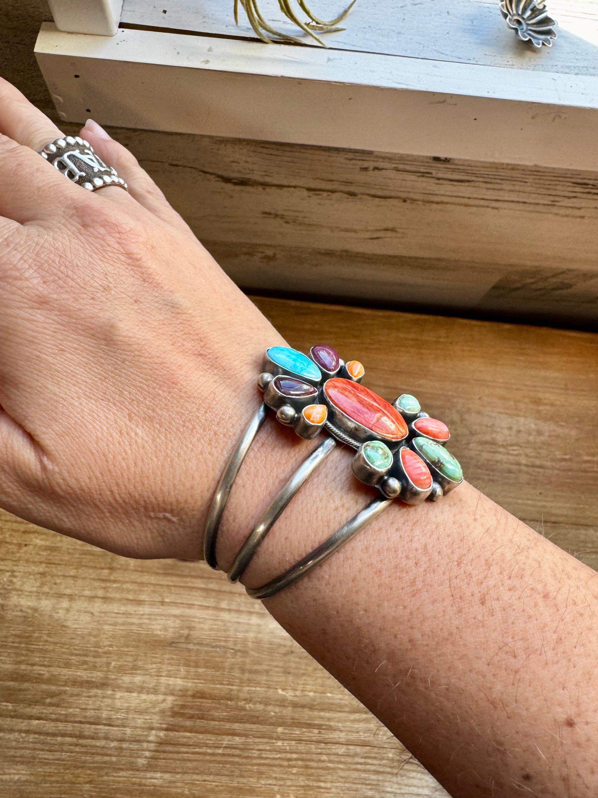 Cuff Bracelet - Mix Stone turquoise and Shell & Sterling Silver