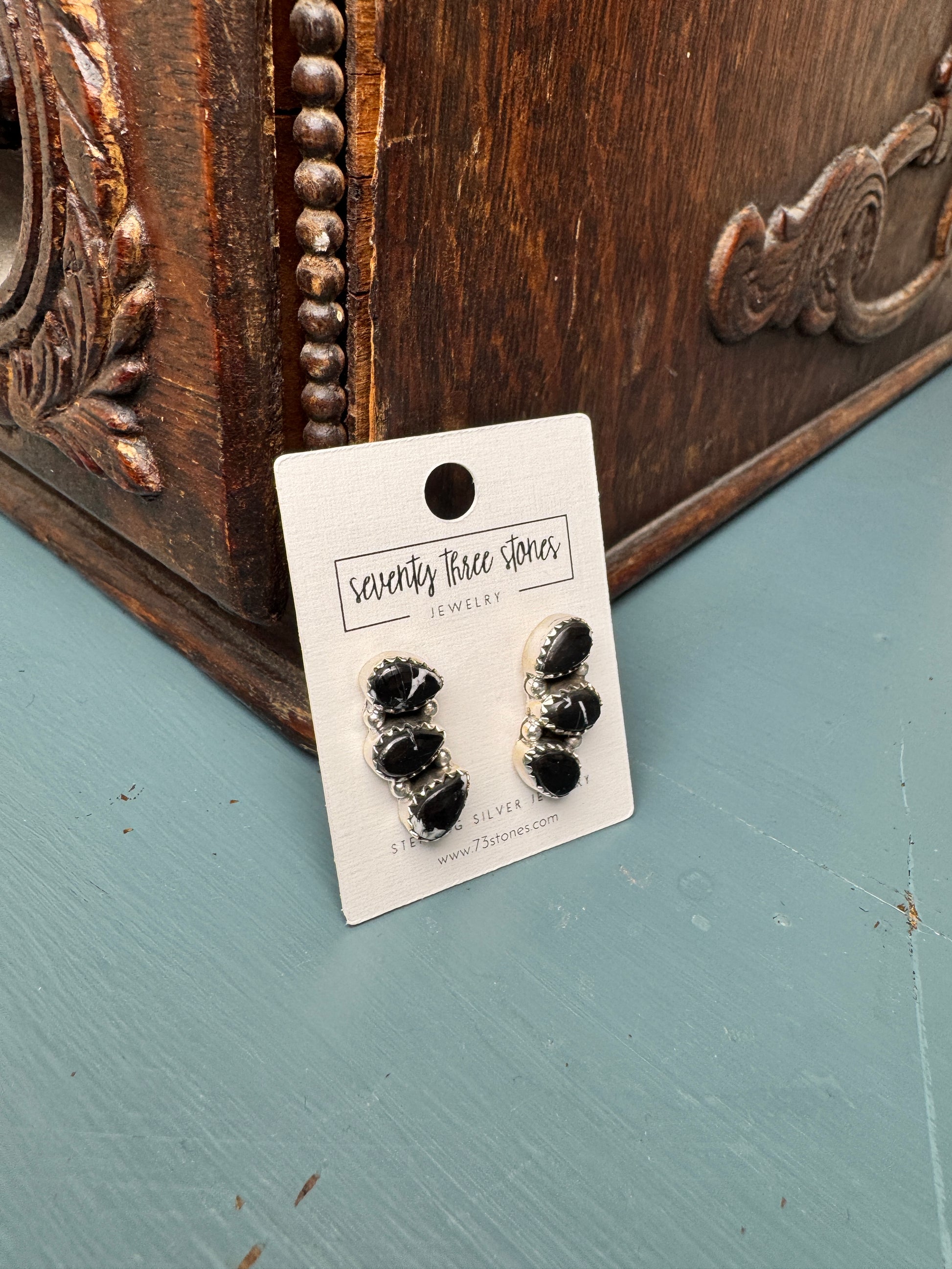 White buffalo 3 stone stud