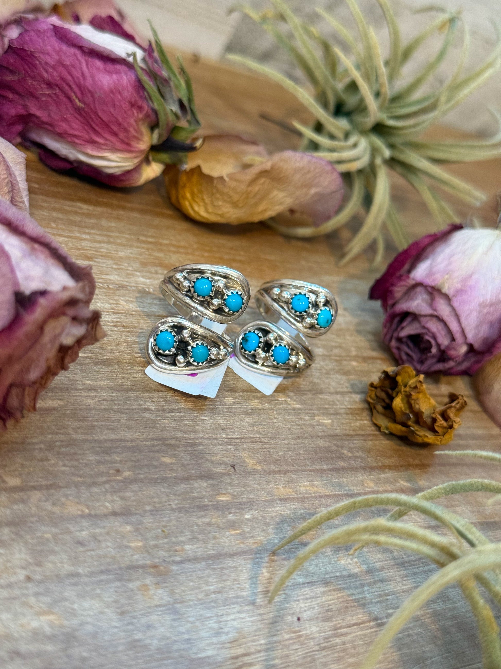 Handmade in the USA by a Native silversmith, this Kingman turquoise ring features a stunning natural stone with vibrant blue tones and intricate matrix details. Crafted in solid sterling silver, this piece captures the timeless spirit of Southwestern jewelry — bold, authentic, and beautifully made.
