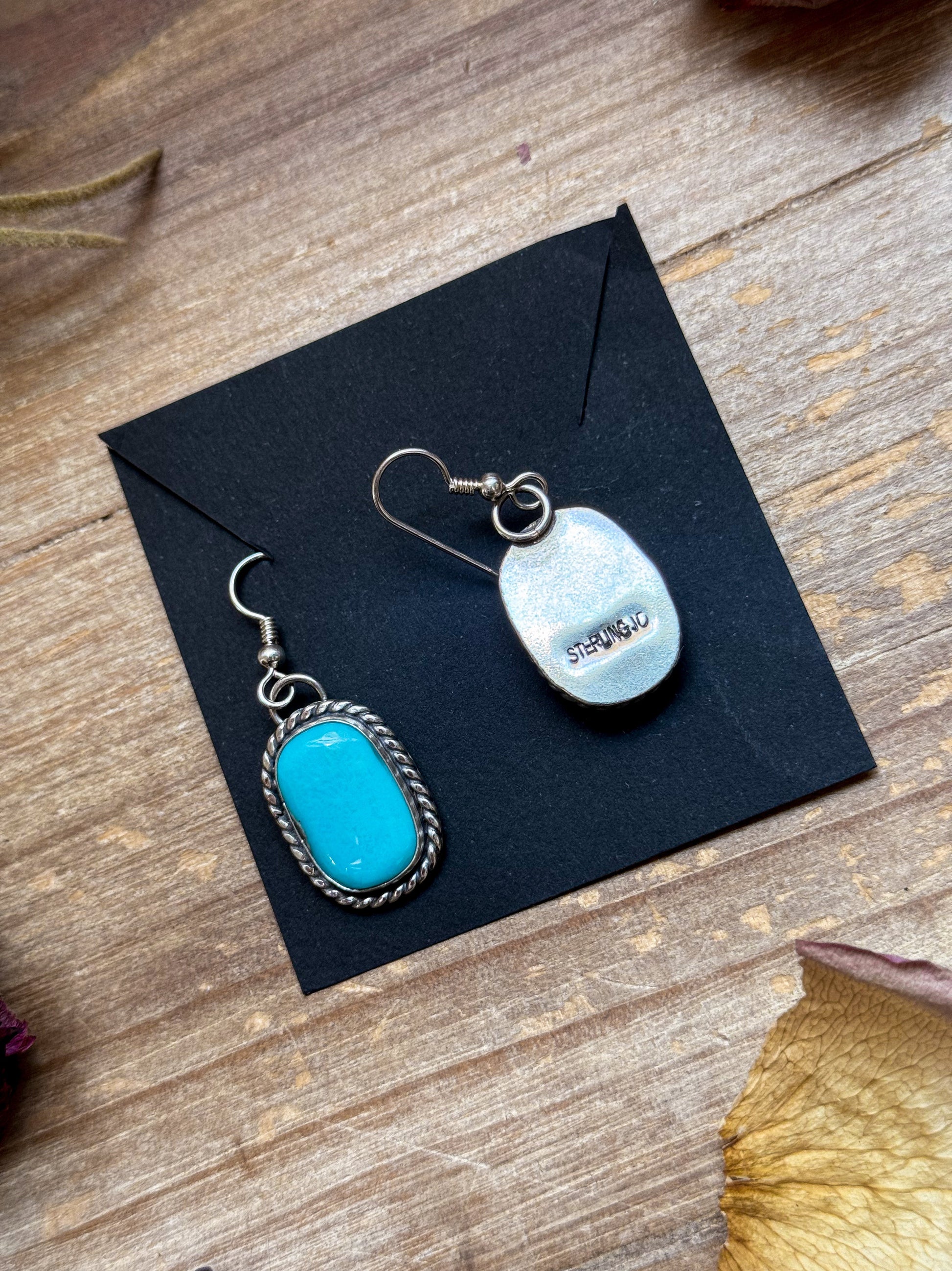 These bold Big Nugget Turquoise dangle earrings are handmade by silversmith Jason Ogg in solid sterling silver, featuring genuine natural turquoise nuggets full of rich color and texture. Each pair showcases Jason Ogg’s signature craftsmanship — blending rugged Southwestern character with refined artistry. Stamped “Sterling” and marked with the artist’s hallmark, these earrings are one of a kind and full of statement style.
