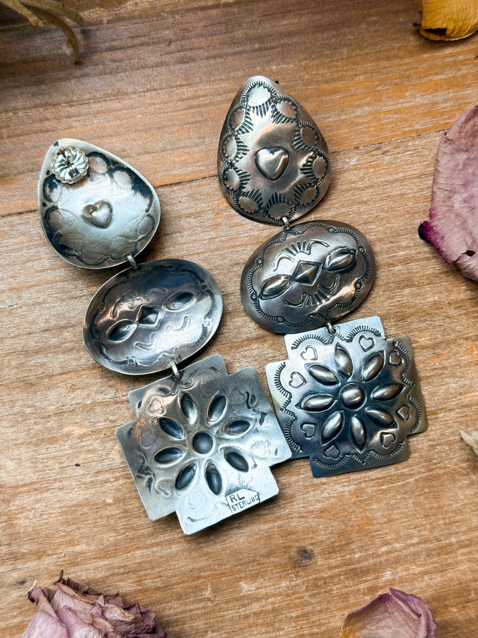 • Sterling silver concho dangle earrings