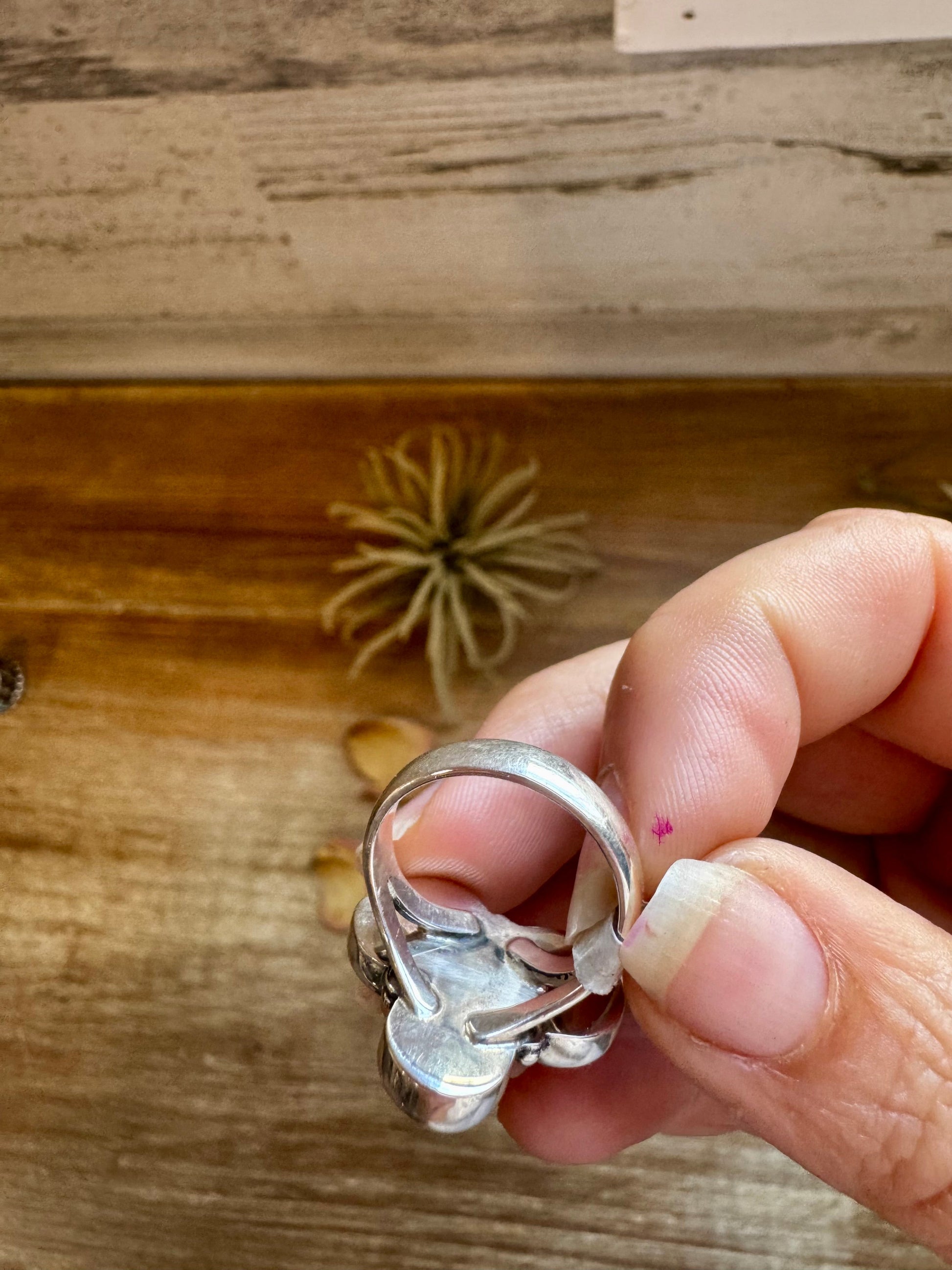 Sterling Silver Round Ring with 3 Kingman Turquoise Stones – Size 7