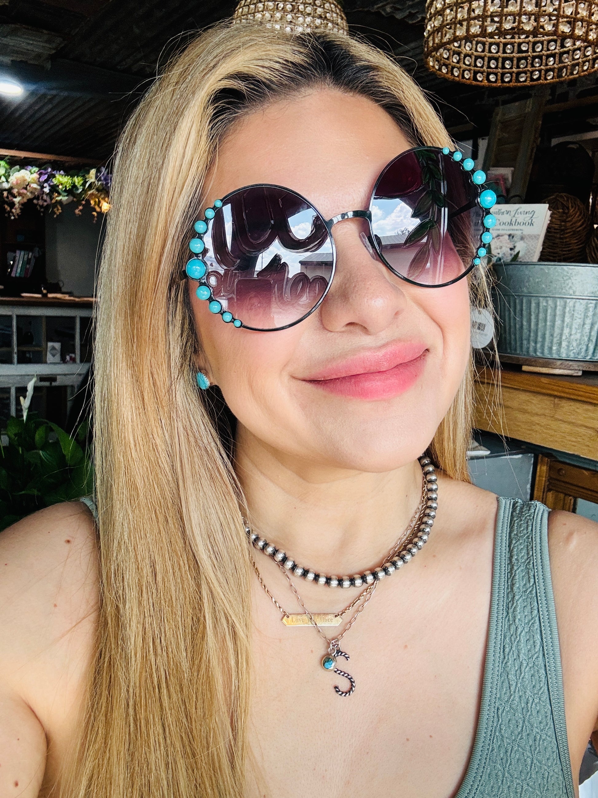 - Faux Turquoise Beads On Frame